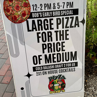 Located in the Eagle Beach area, at the far end of the Costa Linda parking lot, you'll find this delightful outdoor pizza spot! But don't be fooled, there's much more than just pizza on the menu. The pizza here is very chicago tavern style: thin crust and cut in smaller squares with small triangles in the corners. We frequently order pizza for carryout and enjoy it by the pool, what could be better than that? It's great that they still honor their specials for takeout orders. They offer a fantastic happy hour deal from 12-1 pm and 5-7 pm, where you can get a large pizza for the price of a medium.