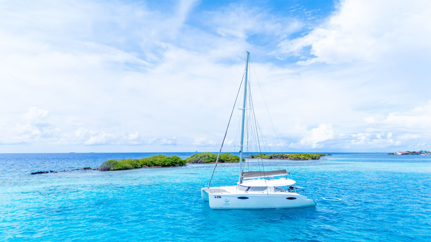 The adventure starts at Varadero Marina, just south of the airport in Oranjestad. There, waiting for you at the end of the dock, is a gorgeous catamaran reserved exclusively for you and your crew—friends, family, whoever you want to bring (up to 15 people, so there’s plenty of room!). The boat is fully staffed with an amazing captain and first mate, and they’ll make sure you’re treated like royalty the entire time. Plus, they’re super knowledgeable about Aruba, pointing out cool landmarks, sharing fun facts, and answering all your questions along the way.