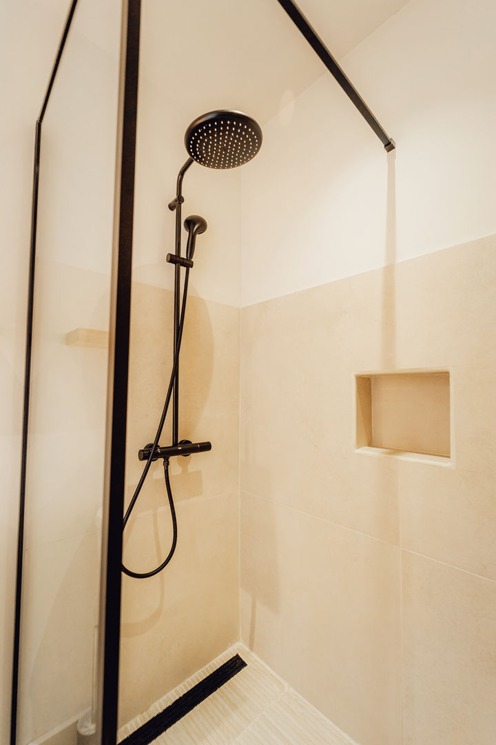 The largest unit, Eleganza, features 3 bedrooms and 3.5 bathrooms and sleeps 8. Each bedroom has an en-suite bathroom, with an additional half bath off the living room. The comfortable sleeping arrangements include two bedrooms with king beds and one with a queen bed, with one of the king bedrooms featuring a soaking tub. There is also a sofa bed in both king bedrooms, perfect for kids!